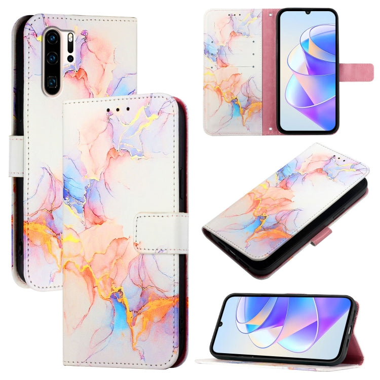 Funda de Cuero con Tapa para Huawei P30 Pt003 con Patrón de Mármol (Blanco Púrpura)