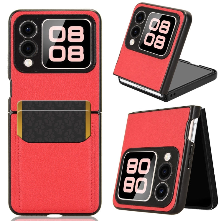 Funda Trasera Huawei Nova Flip con Ranuras para Tarjetas y Textura de Lichi (Roja)