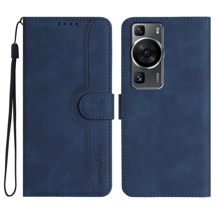 Funda de Piel con Diseño de Corazón para Huawei P60 y P60 Pro (Azul Real)