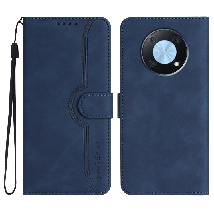 Funda de Cuero con Diseño de Corazón para Huawei Enjoy 50 Pro y Nova Y90 (Azul Real)