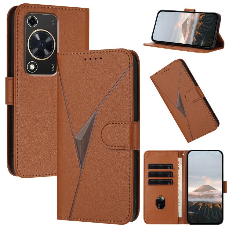 Funda de Cuero Huawei Nova Y72 con Cierre de Hebilla y Diseño de Triángulos (Marrón)