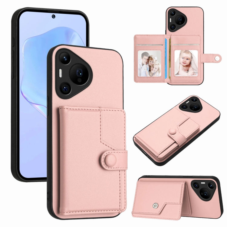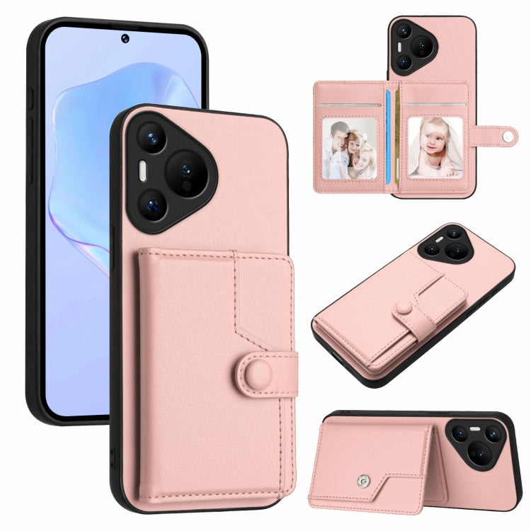 Funda Antirrobo RFID para Huawei Pura 70 Pro con Botón y Tarjetero (Rosa)