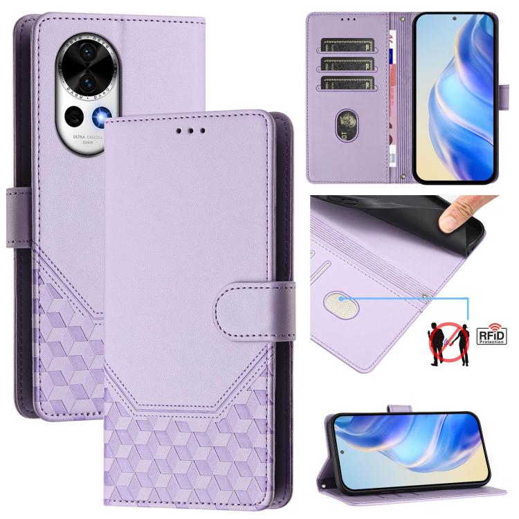 Funda de Cuero Rfid con Relieve en Panal para Huawei Nova 13/Nova 12 (Morado Claro)