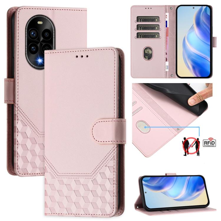 Funda de Cuero Rfid con Relieve en Panal para Huawei Nova 13 Pro (Rosa)