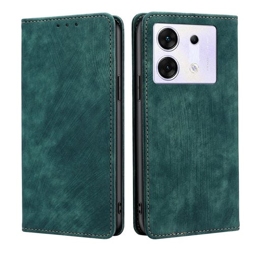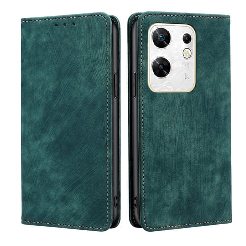 Funda de Cuero Magnético para Infinix Zero 30 4G con Rfid y Cepillo Antirrobo (Verde)