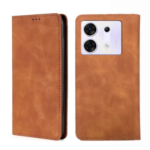 Funda de Cuero Magnética para Infinix Zero 30 5G Skin Feel (Marrón Oscuro)