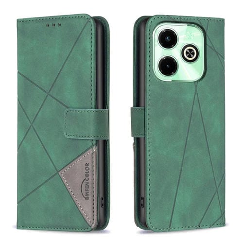 Funda de Cuero con Tapa para Infinix Hot 40I Diamond Lattice Wallet (Verde)