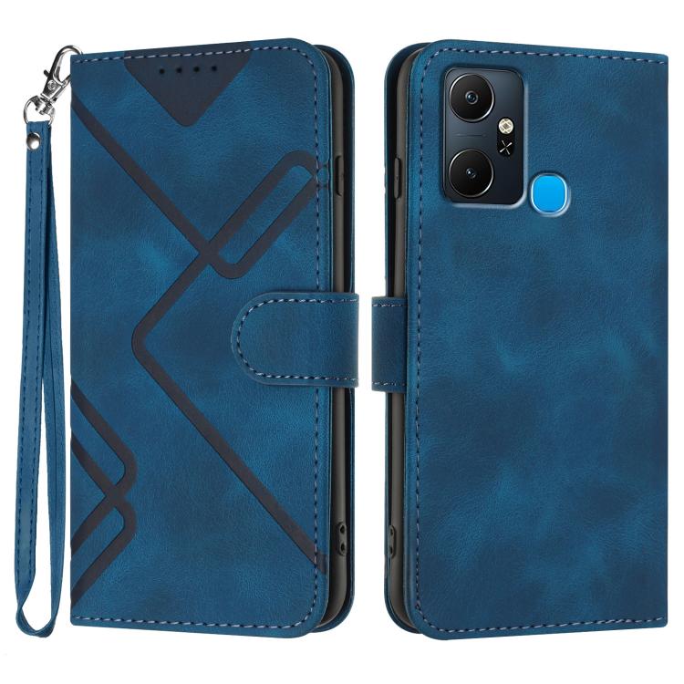 Funda de Cuero Infinix Hot 20 4G con Diseño de Líneas y Tacto Suave (Azul Real)