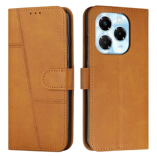 Funda de Cuero para Infinix Hot 50 4G con Diseño de Rayas y Tacto Sedoso (Marrón)