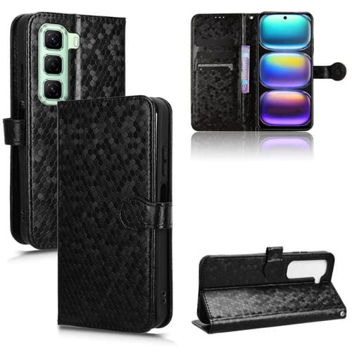 Funda de Cuero con Textura de Puntos Panal para Infinix Hot 50 5G (Negra)