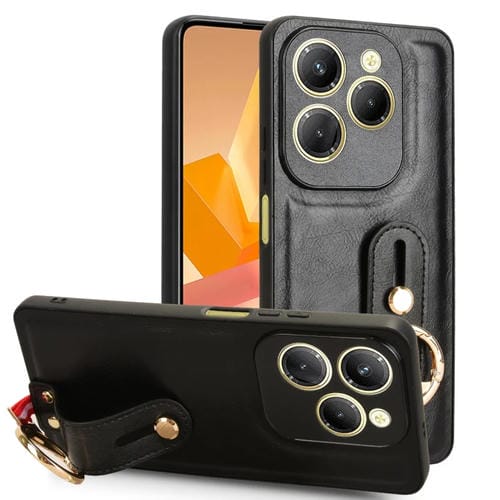 Funda de Cuero con Correa para Muñeca para Infinix Hot 40/40 Pro (Negra)