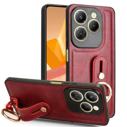 Funda de Cuero con Correa para la Muñeca para Infinix Hot 40/40 Pro (Roja)