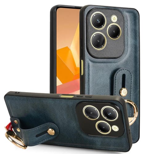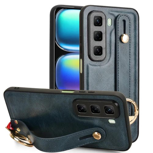 Funda de Cuero con Correa para Muñeca para Infinix Hot 40/40 Pro (Azul)