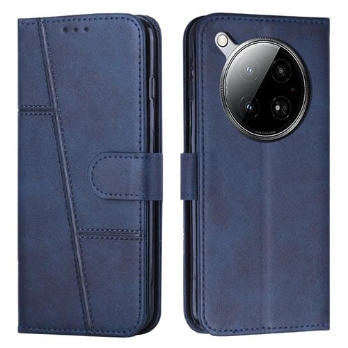 Funda de Cuero con Textura de Becerro y Costuras para Infinix Zero 40 4G (Azul)