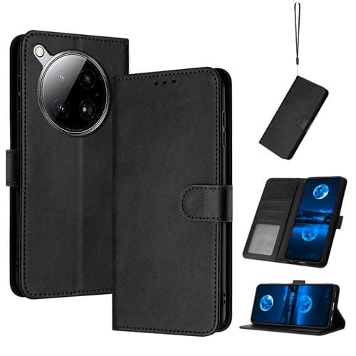 Funda de Cuero con Correa para el Cuello para Infinix Hot 50 5G (Negra)