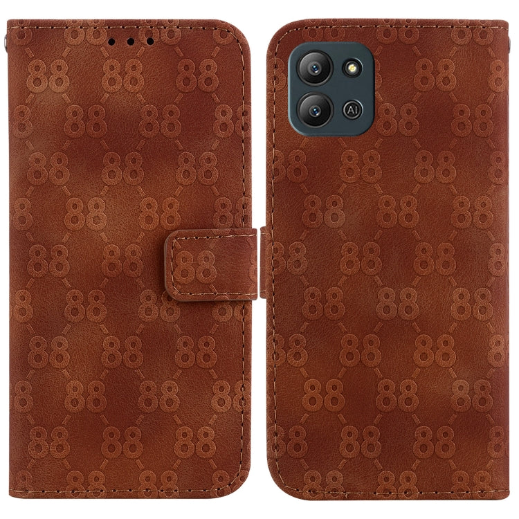 Estuche para teléfono Infinix Hot 20 Play cuero en relieve doble forma 8 (Marrón)