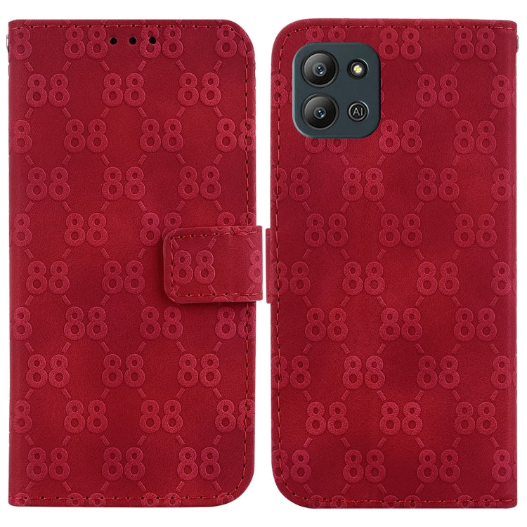 Estuche para Infinix Hot 11 2022 de Cuero en Relieve con Doble Forma de 8 (Rojo)