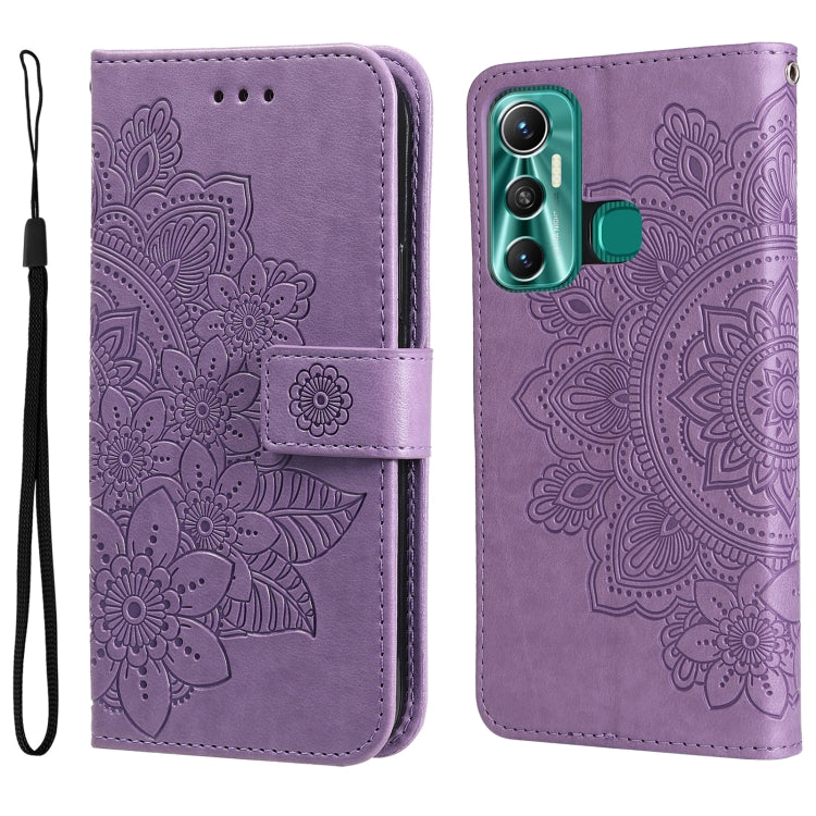 Funda Horizontal Flip de Cuero para Infinix Hot 11 con Relieve 7-Petal Flowers (Lila)