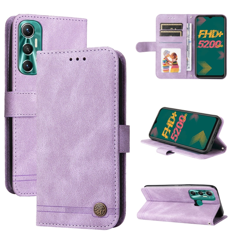 Skin para Infinix Hot 11 SenTFle Life con Botón de Metal y Cuero (Púrpura)