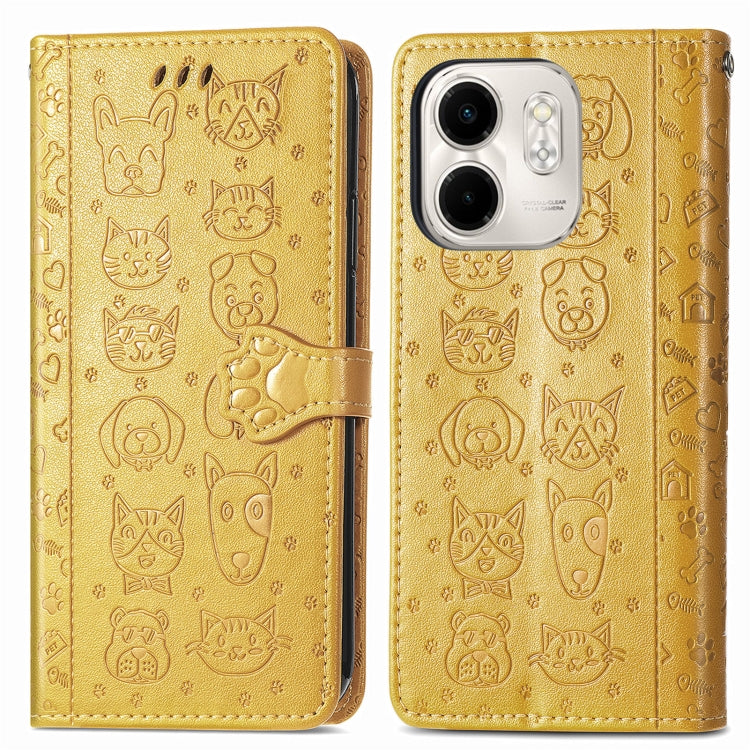 Funda de Piel con Relieve de Gato y Perro para Infinix Smart 9 (Amarilla)