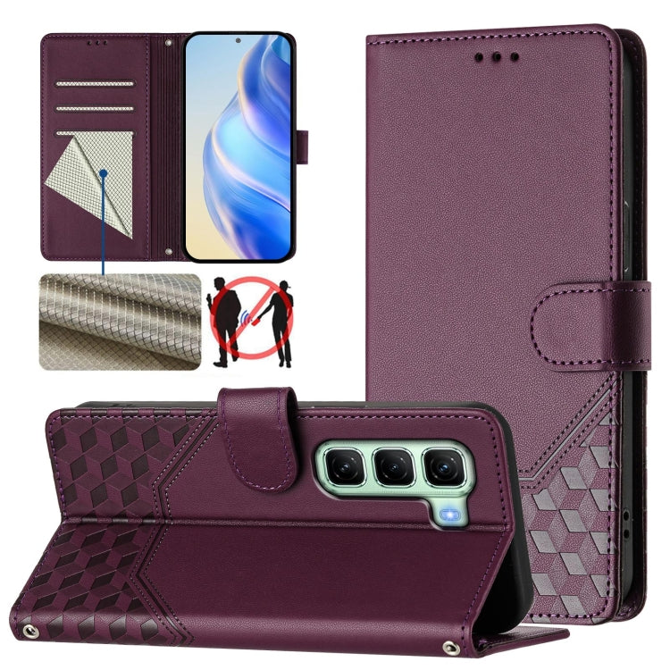 Funda de Cuero Rfid con Relieve en Panal para Infinix Hot 50 4G (Violeta)