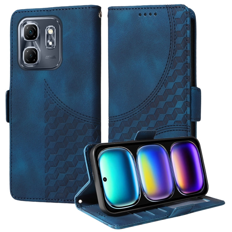Funda de Cuero con Rombos en Relieve y Estrellas para Infinix Hot 50I Smart 9 (Azul)