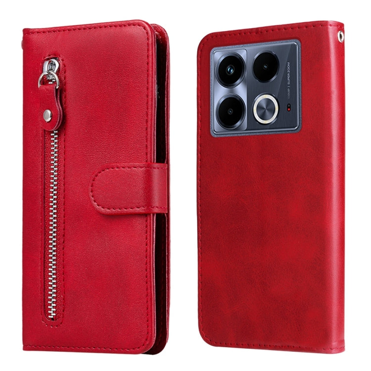 Funda de Piel Textura de Becerro con Cremallera para Infinix Note 40 4G (Rojo)