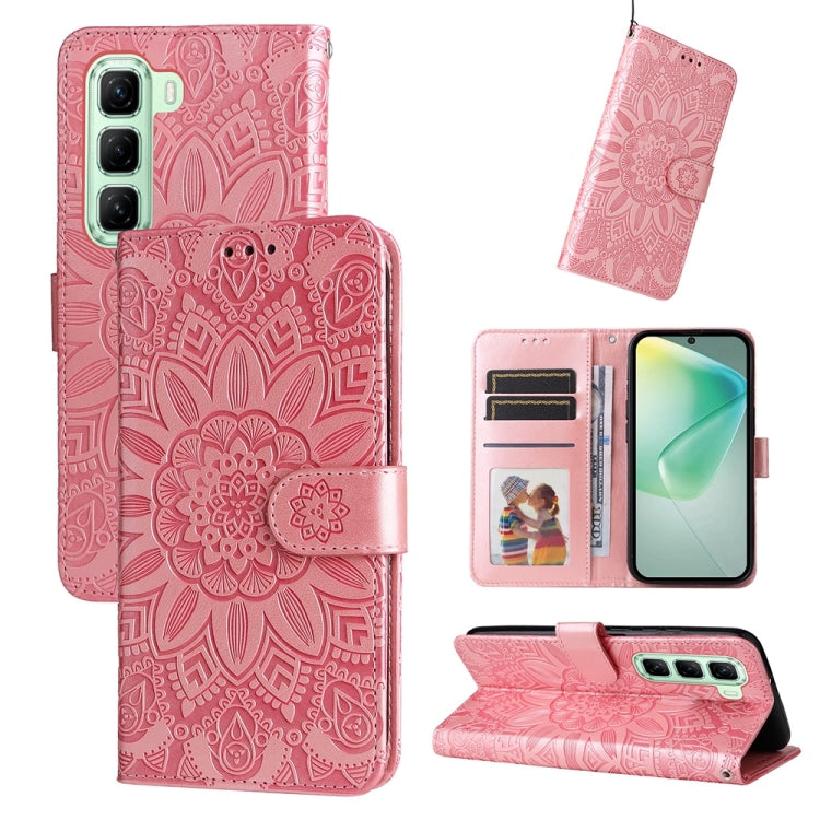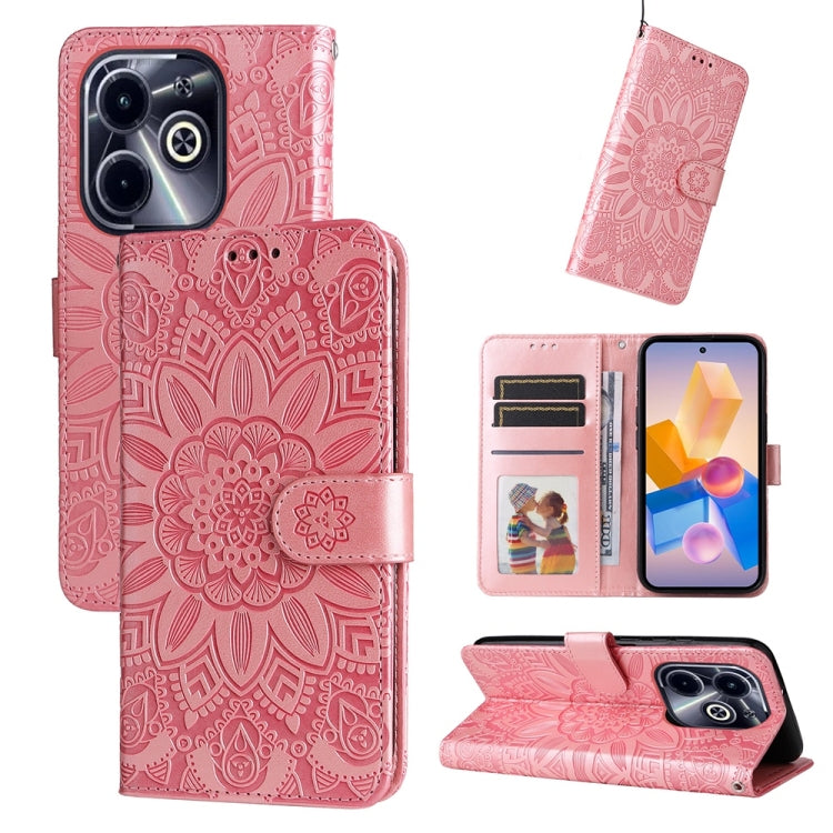 Funda de Piel para Infinix Hot 40I con Estampado de Girasoles en Relieve (Rosa)