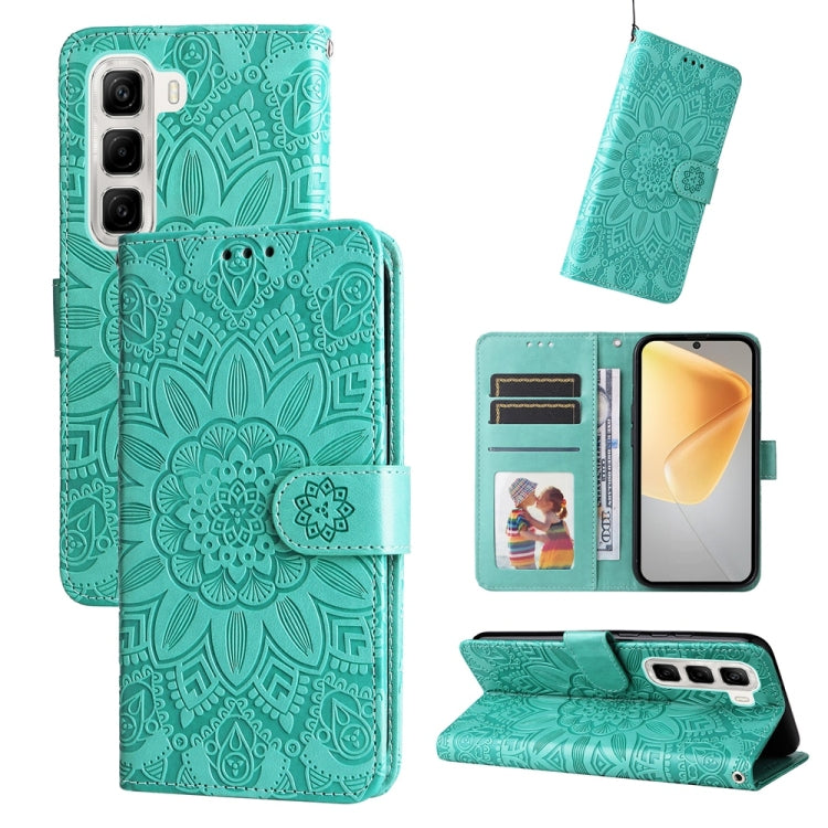 Funda de Piel con Relieve de Girasol para Teléfono Infinix Hot 50 4G (Verde)