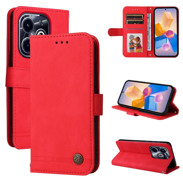 Funda de Cuero con Botones de Metal y Árbol de la Vida para Infinix Hot 40I (Rojo)