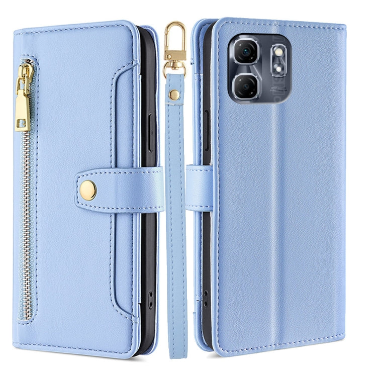 Funda de Cuero con Cremallera y Textura de Oveja para Infinix Hot 50I 4G (Azul)