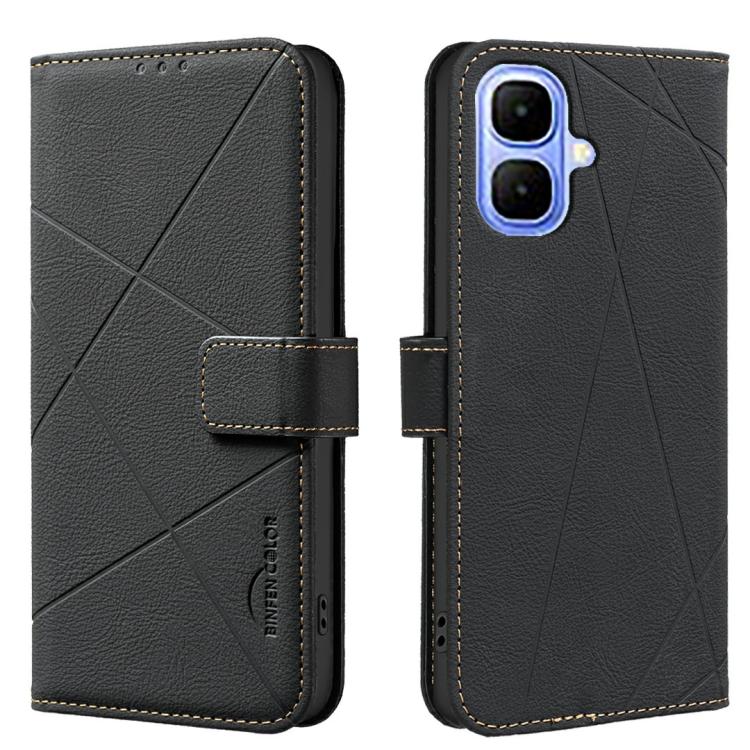 Funda de cuero RFID con patrón geométrico para Infinix Smart 10 4G (negra)