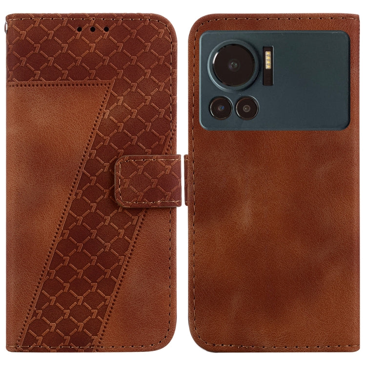 Funda de Teléfono Cuero En Relieve en Forma de 7 para Infinix Note 12 Vip (Marrón)