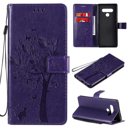 Funda de Cuero para LG Stylo 6 con Tapa Horizontal, Soporte, Ranuras y Cordón (Morado)