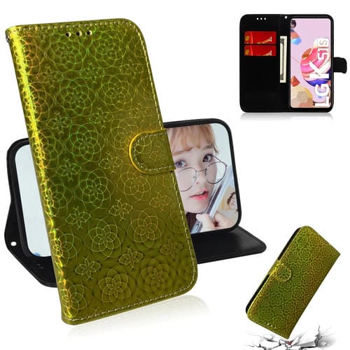 Funda Cuero PU para LG K41S con Hebilla Magnética, Soporte, Ranuras y Cordón (Dorado)