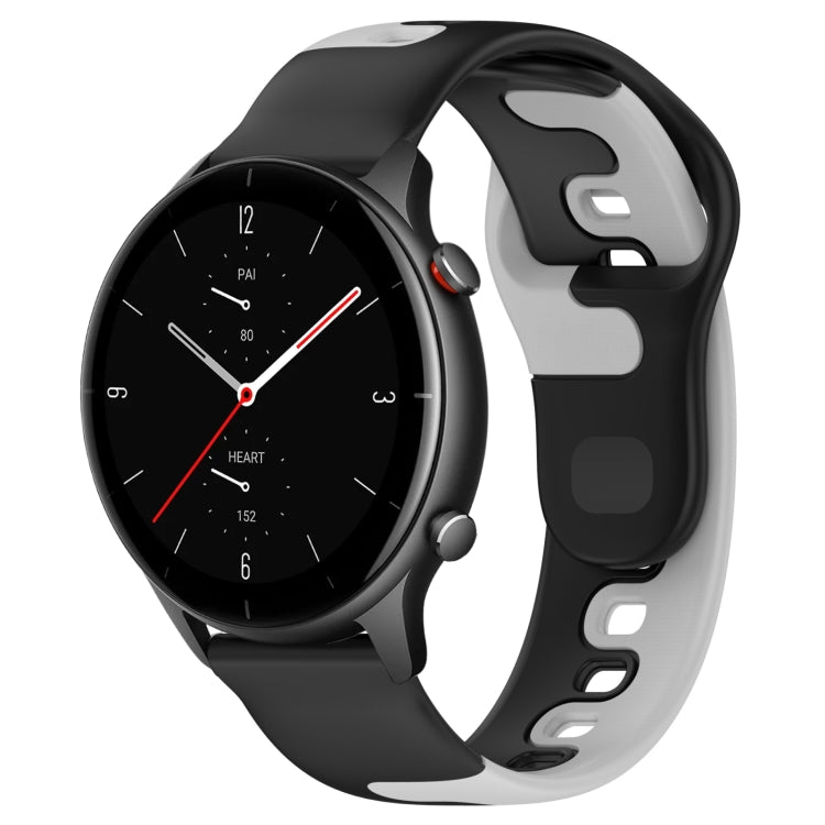 Para Amazfit Gtr 2E Correa de Reloj de Silicona de Doble Color de 22mm (Negro + Gris)