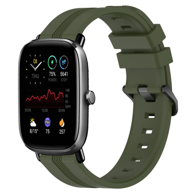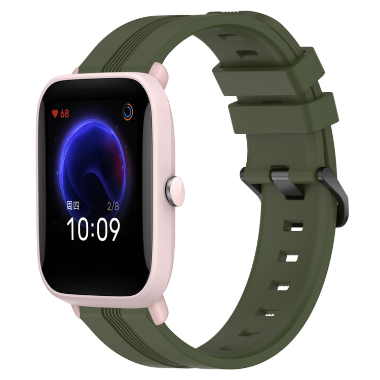 Banda de Reloj de Silicona para Amazfit Pop 20mm con Rayas Cóncavas (Verde Militar)
