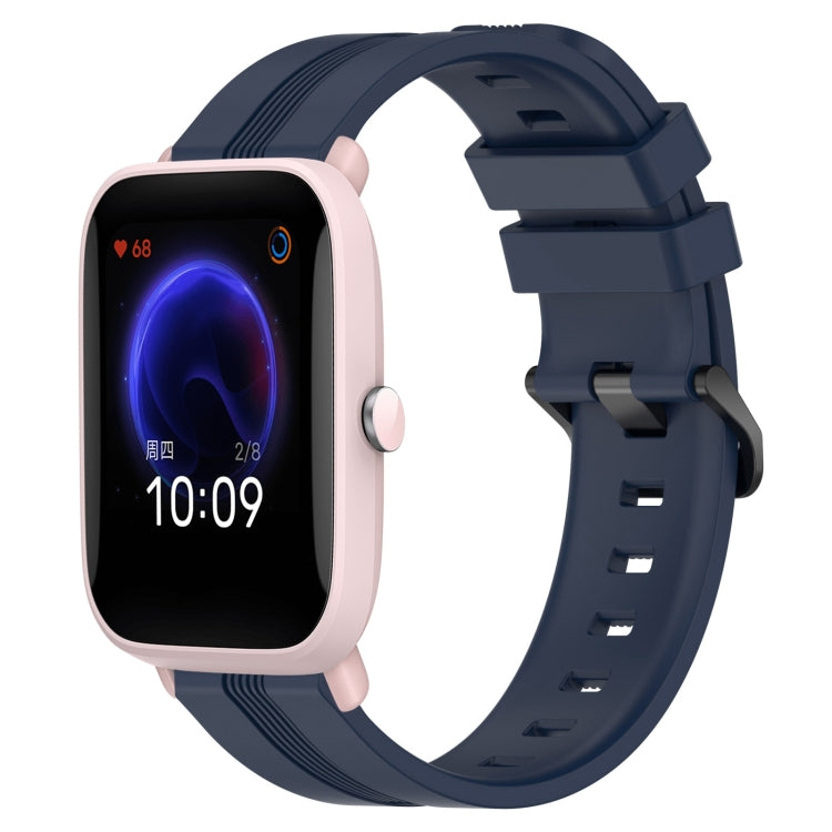 Correa de Reloj Silicona para Amazfit Pop Pro 20mm con Rayas Cóncavas (Azul Marino)
