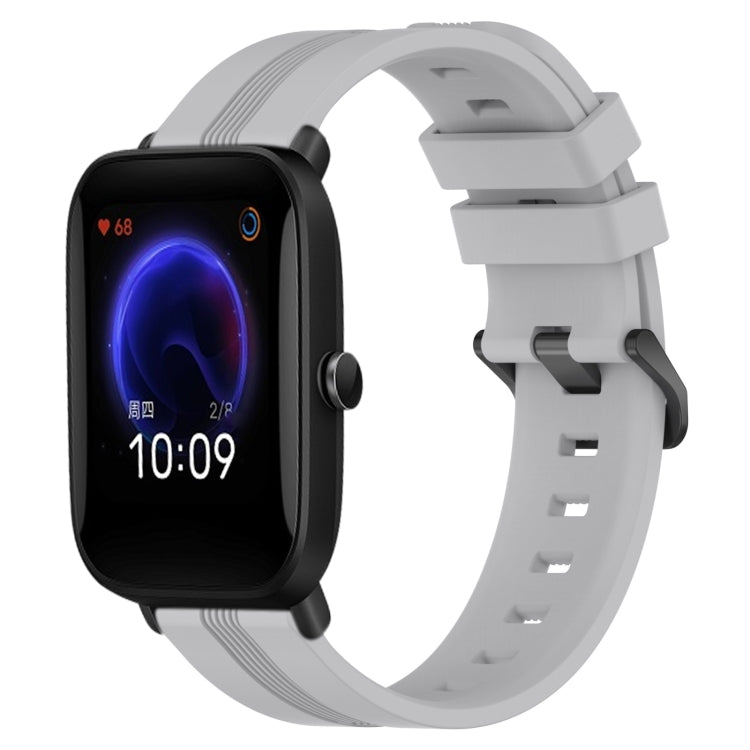 Banda de Reloj de Silicona para Amazfit Pop 20mm con Rayas Cóncavas (Gris)