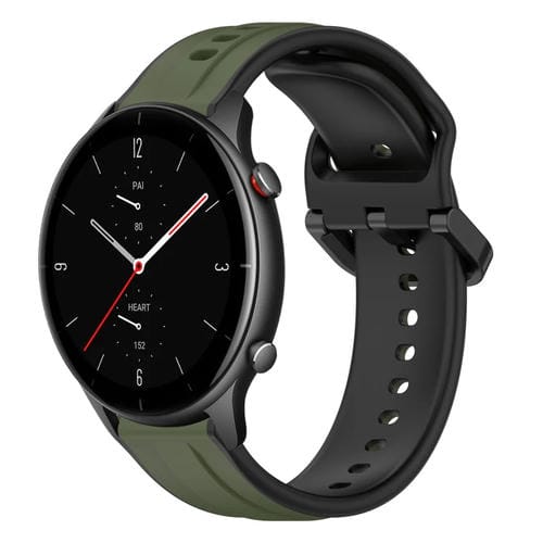 Correa de Silicona para Amazfit GTR 2E 22mm con Bucle Convexo (Verde Oscuro + Negro)