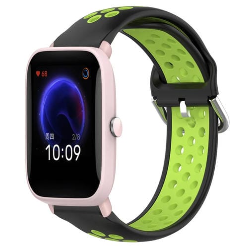 Correa de Reloj Amazfit Pop Pro 20mm Silicona Deportiva Perforada (Negro + Lima)