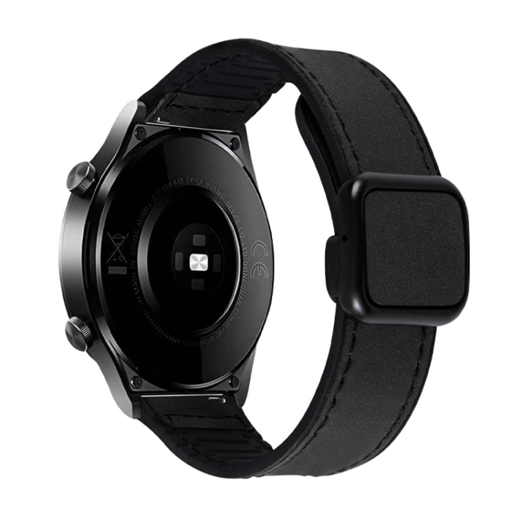 Correa de Reloj Silicona y Cuero con Hebilla Magnética Plegable 22mm (Negro)
