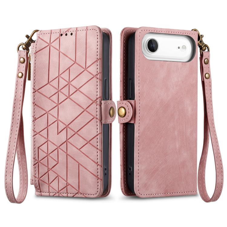 Funda de cuero con hebilla lateral y cremallera geométrica para iPhone Air (rosa)