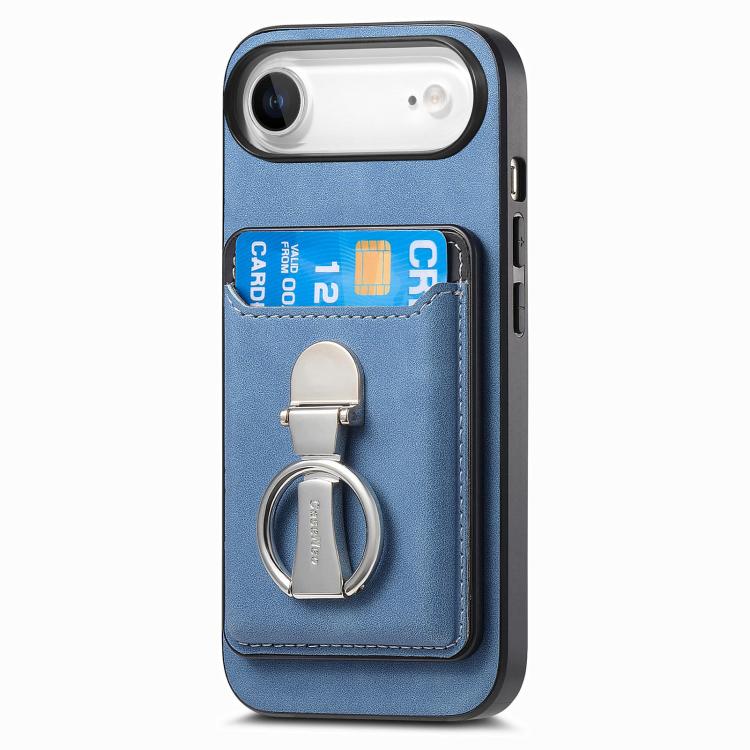 Funda retro plegable con anillo y tarjetero para iPhone Air, MagSafe (azul)