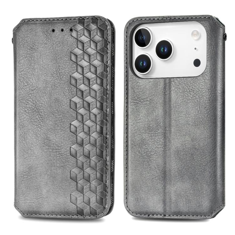 Funda de cuero magnética con diseño de cuadrícula cúbica para iPhone 17 Pro (gris)