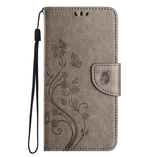 Funda de cuero con tapa y diseño de mariposas y flores para iPhone 17 (gris)