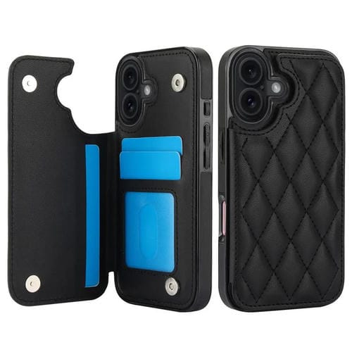 Funda de piel sintética con doble hebilla y diseño rómbico para iPhone 17 (negra)
