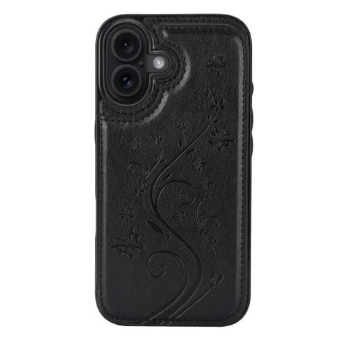Funda de PU con doble hebilla y estampado de mariposa para iPhone 17 (negra)