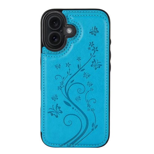 Funda de PU con doble hebilla y estampado de mariposa para iPhone 17 (azul)