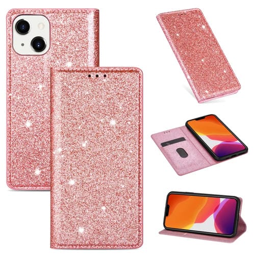 Estuche de Cuero Magnético Ultrafino con Purpurina para iPhone 14 (Negro)